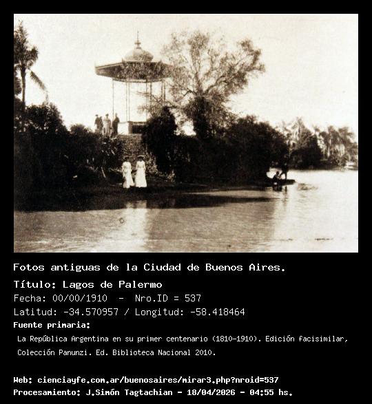 Lagos de Palermo - 00/00/1910 - [Id: 537] Fuente:La República Argentina en su primer centenario (1810-1910). Edición facisimilar, Colección Panunzi. Ed. Biblioteca Nacional 2010. |