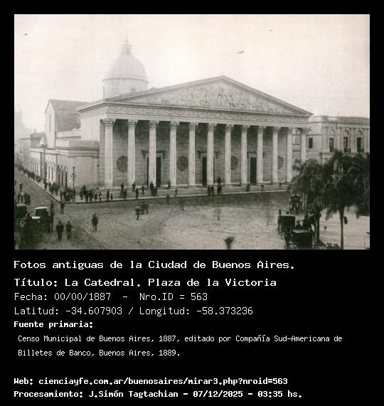 La Catedral. Plaza de la Victoria - 00/00/1887 - [Id: 563] Fuente:Censo Municipal de Buenos Aires, 1887, editado por Compañía Sud-Americana de Billetes de Banco, Buenos Aires, 1889. Palabras claves:Plaza de Mayo. |