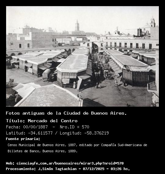 Mercado del Centro - 00/00/1887 - [Id: 570] Fuente:Censo Municipal de Buenos Aires, 1887, editado por Compañía Sud-Americana de Billetes de Banco, Buenos Aires, 1889. Palabras claves:Diagonal sur |