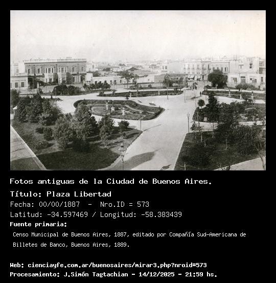 Plaza Libertad - 00/00/1887 - [Id: 573] Fuente:Censo Municipal de Buenos Aires, 1887, editado por Compañía Sud-Americana de Billetes de Banco, Buenos Aires, 1889. |