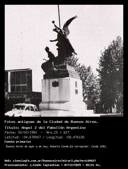 Angel 2 del Pabellón Argentino - 00/00/1980 - [Id: 627] Fuente:Buenos Aires de ayer y de hoy. Roberto Conde.Ed corregidor. Conde 1982. Palabras claves:ángeles del Pabellón Argentino |