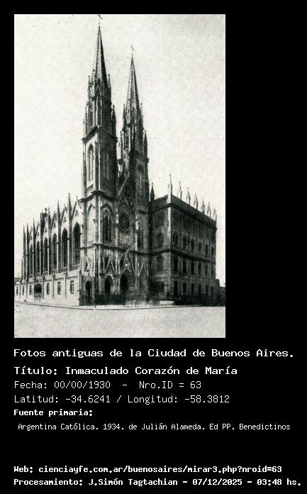 Inmaculado Corazón de María - 00/00/1930 - [Id: 63] Fuente:Argentina Católica. 1934. de Julián Alameda. Ed PP. Benedictinos Palabras claves:Iglesia Inmaculado Corazón de María |