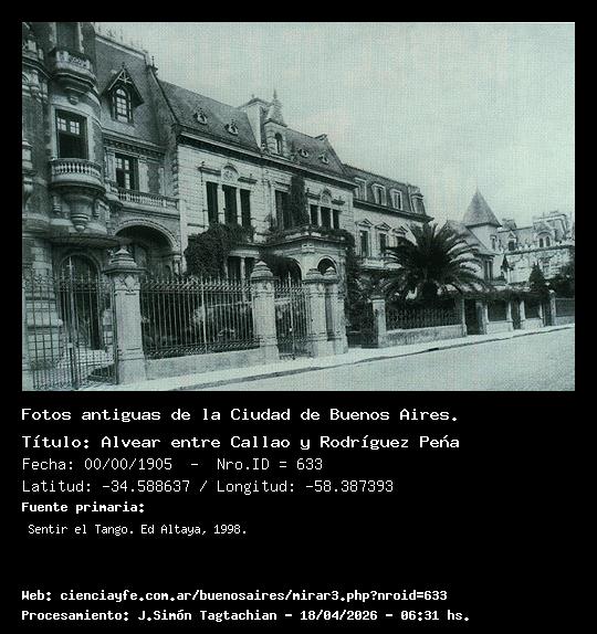 Alvear entre Callao y Rodríguez Peña - 00/00/1905 - [Id: 633] Fuente:Sentir el Tango. Ed Altaya, 1998. Palabras claves:Maguire |