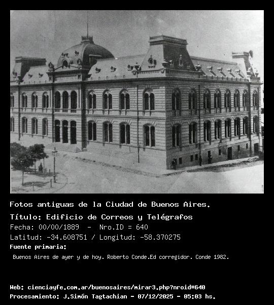 Edificio de Correos y Telégrafos - 00/00/1889 - [Id: 640] Fuente:Buenos Aires de ayer y de hoy. Roberto Conde.Ed corregidor. Conde 1982. Palabras claves:Casa Rosada |