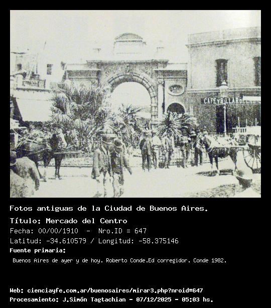 Mercado del Centro - 00/00/1910 - [Id: 647] Fuente:Buenos Aires de ayer y de hoy. Roberto Conde.Ed corregidor. Conde 1982. Palabras claves:Diagonal sur |