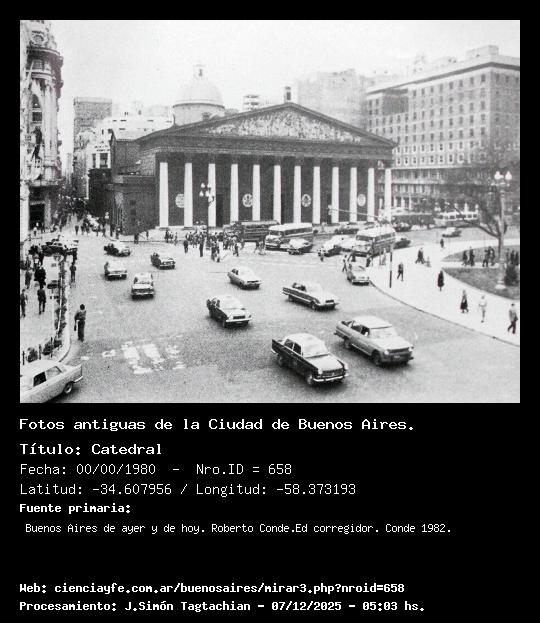 Catedral - 00/00/1980 - [Id: 658] Fuente:Buenos Aires de ayer y de hoy. Roberto Conde.Ed corregidor. Conde 1982. Palabras claves:Plaza de Mayo. |