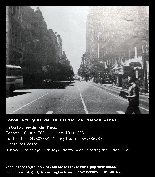 Avda de Mayo - 00/00/1980 - [Id: 666] Fuente:Buenos Aires de ayer y de hoy. Roberto Conde.Ed corregidor. Conde 1982. Palabras claves:Avda. de Mayo |