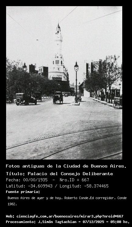 Palacio del Consejo Deliberante - 00/00/1935 - [Id: 667] Fuente:Buenos Aires de ayer y de hoy. Roberto Conde.Ed corregidor. Conde 1982. Palabras claves:Concejo Deliberante |
