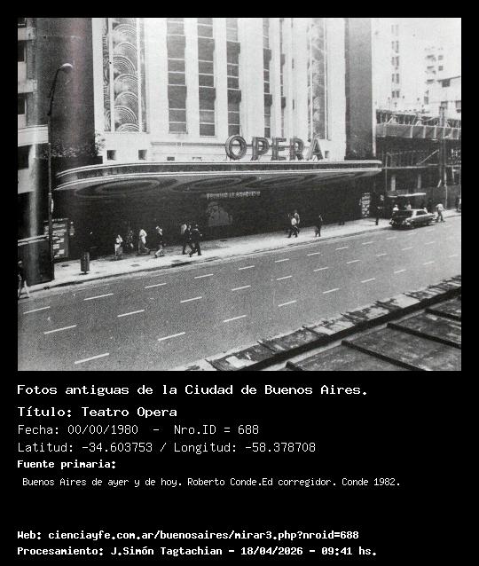 Teatro Opera - 00/00/1980 - [Id: 688] Fuente:Buenos Aires de ayer y de hoy. Roberto Conde.Ed corregidor. Conde 1982. Palabras claves:teatro ópera |