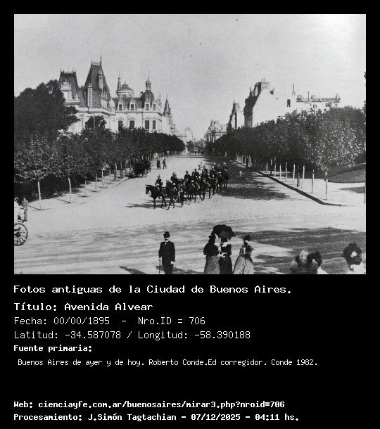 Avenida Alvear - 00/00/1895 - [Id: 706] Fuente:Buenos Aires de ayer y de hoy. Roberto Conde.Ed corregidor. Conde 1982. Palabras claves:Dose Dosse |