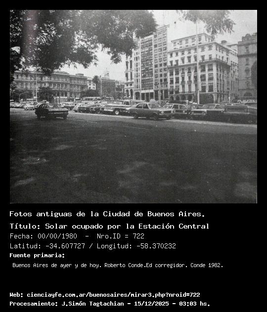 Solar ocupado por la Estación Central - 00/00/1980 - [Id: 722] Fuente:Buenos Aires de ayer y de hoy. Roberto Conde.Ed corregidor. Conde 1982. |