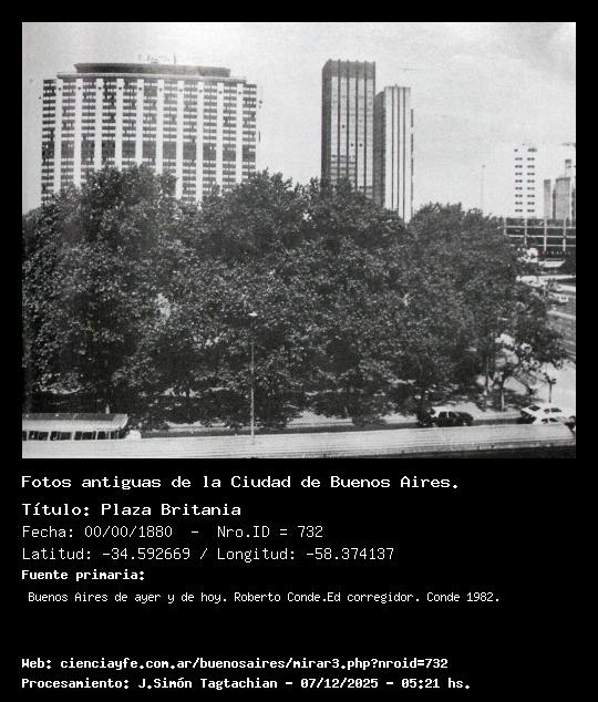 Plaza Britania - 00/00/1880 - [Id: 732] Fuente:Buenos Aires de ayer y de hoy. Roberto Conde.Ed corregidor. Conde 1982. |