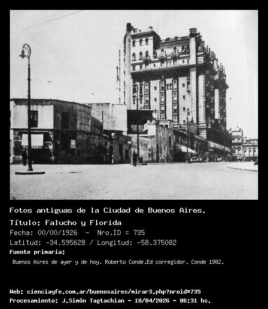Falucho y Florida - 00/00/1926 - [Id: 735] Fuente:Buenos Aires de ayer y de hoy. Roberto Conde.Ed corregidor. Conde 1982. |