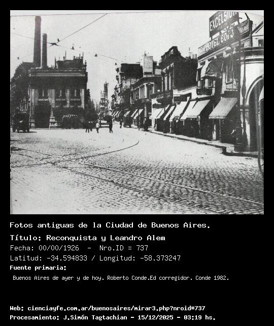 Reconquista y Leandro Alem - 00/00/1926 - [Id: 737] Fuente:Buenos Aires de ayer y de hoy. Roberto Conde.Ed corregidor. Conde 1982. Palabras claves:Cartel Excelsior |