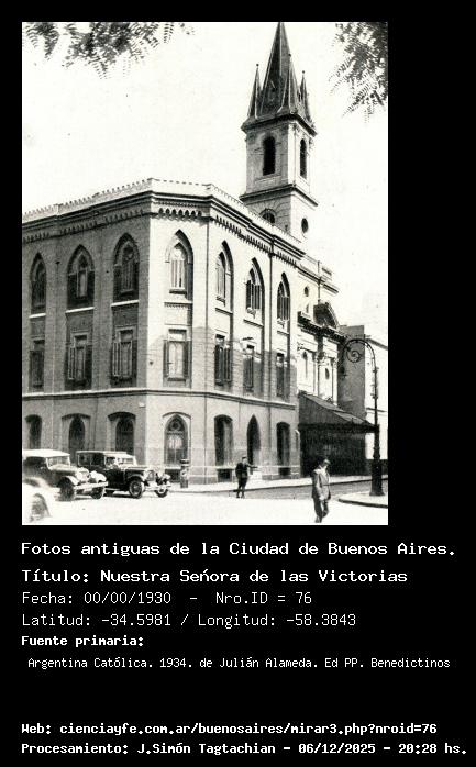 Nuestra Señora de las Victorias - 00/00/1930 - [Id: 76] Fuente:Argentina Católica. 1934. de Julián Alameda. Ed PP. Benedictinos Palabras claves:Iglesia Nuestra Señora de las Victorias |