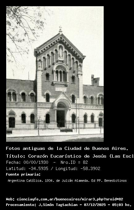 Corazón Eucarístico de Jesús (Las Esclavas) - 00/00/1930 - [Id: 82] Fuente:Argentina Católica. 1934. de Julián Alameda. Ed PP. Benedictinos Palabras claves:Iglesia Corazón Eucarístico de Jesús (Las Esclavas) |