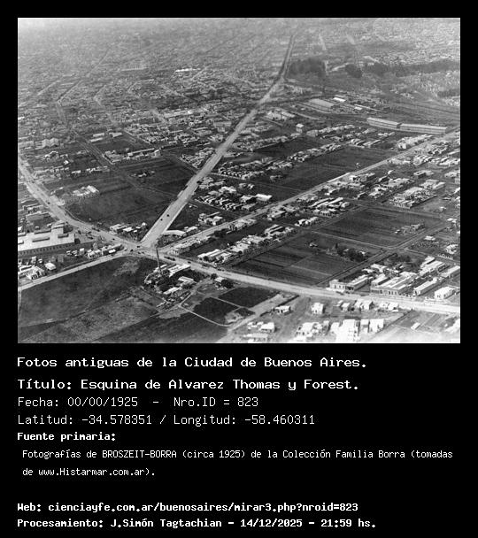 Esquina de Alvarez Thomas y Forest. - 00/00/1925 - [Id: 823] Fuente:Fotografías de BROSZEIT-BORRA (circa 1925) de la Colección Familia Borra (tomadas de www.Histarmar.com.ar). |