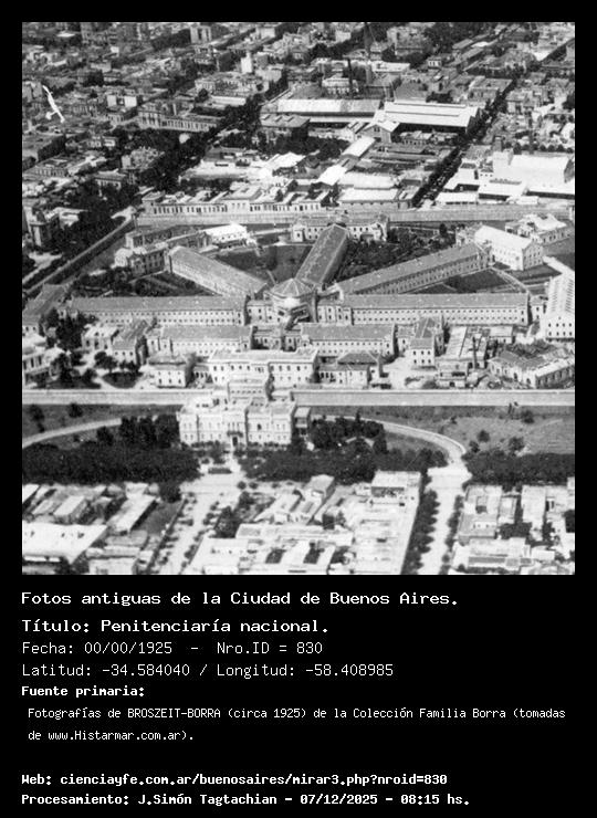 Penitenciaría nacional. - 00/00/1925 - [Id: 830] Fuente:Fotografías de BROSZEIT-BORRA (circa 1925) de la Colección Familia Borra (tomadas de www.Histarmar.com.ar). Palabras claves:Cárcel de Las Heras. |