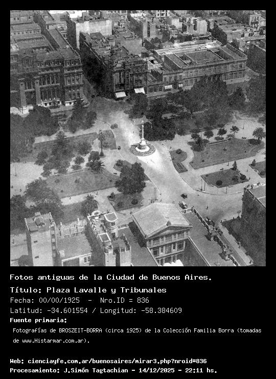 Plaza Lavalle y Tribunales - 00/00/1925 - [Id: 836] Fuente:Fotografías de BROSZEIT-BORRA (circa 1925) de la Colección Familia Borra (tomadas de www.Histarmar.com.ar). |