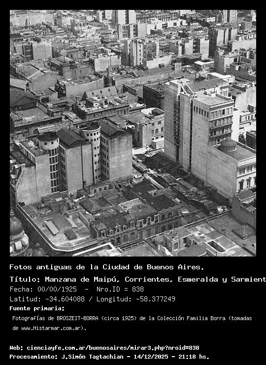 Manzana de Maipú, Corrientes, Esmeralda y Sarmiento - 00/00/1925 - [Id: 838] Fuente:Fotografías de BROSZEIT-BORRA (circa 1925) de la Colección Familia Borra (tomadas de www.Histarmar.com.ar). |