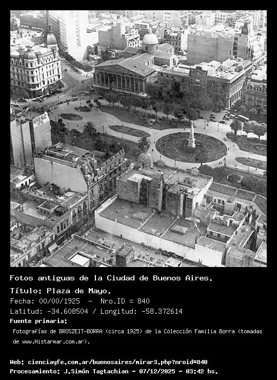 Plaza de Mayo. - 00/00/1925 - [Id: 840] Fuente:Fotografías de BROSZEIT-BORRA (circa 1925) de la Colección Familia Borra (tomadas de www.Histarmar.com.ar). |
