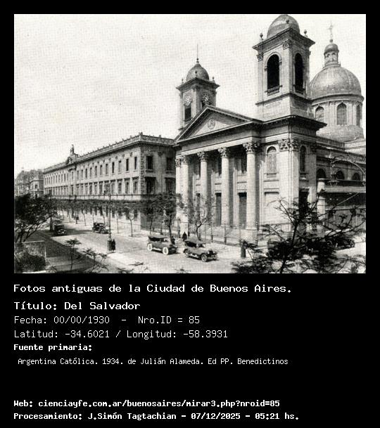 Del Salvador - 00/00/1930 - [Id: 85] Fuente:Argentina Católica. 1934. de Julián Alameda. Ed PP. Benedictinos Palabras claves:Iglesia Del Salvador |
