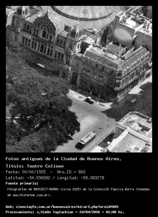 Teatro Coliseo - 00/00/1925 - [Id: 865] Fuente:Fotografías de BROSZEIT-BORRA (circa 1925) de la Colección Familia Borra (tomadas de www.Histarmar.com.ar). |