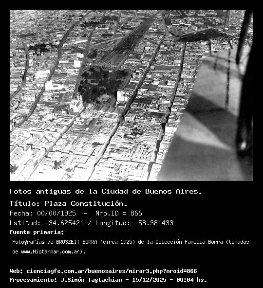 Plaza Constitución. - 00/00/1925 - [Id: 866] Fuente:Fotografías de BROSZEIT-BORRA (circa 1925) de la Colección Familia Borra (tomadas de www.Histarmar.com.ar). |