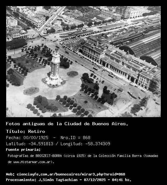 Retiro - 00/00/1925 - [Id: 868] Fuente:Fotografías de BROSZEIT-BORRA (circa 1925) de la Colección Familia Borra (tomadas de www.Histarmar.com.ar). Palabras claves:Torre de los ingleses. |