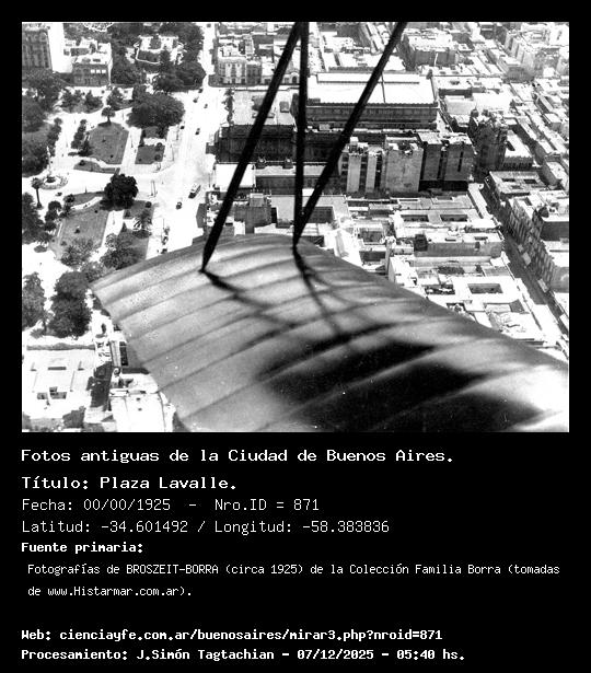 Plaza Lavalle. - 00/00/1925 - [Id: 871] Fuente:Fotografías de BROSZEIT-BORRA (circa 1925) de la Colección Familia Borra (tomadas de www.Histarmar.com.ar). Palabras claves:Teatro Colón, Palacio Miró. |