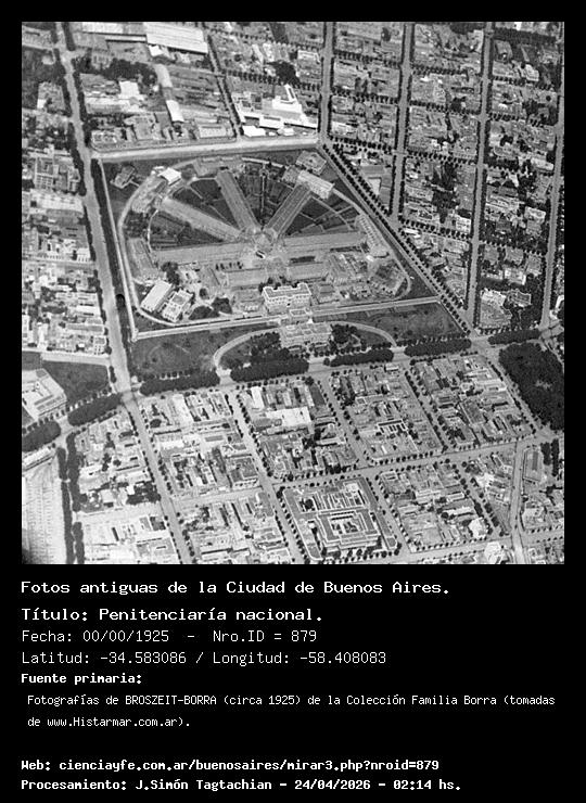 Penitenciaría nacional. - 00/00/1925 - [Id: 879] Fuente:Fotografías de BROSZEIT-BORRA (circa 1925) de la Colección Familia Borra (tomadas de www.Histarmar.com.ar). Palabras claves:Cárcel de Las Heras. |