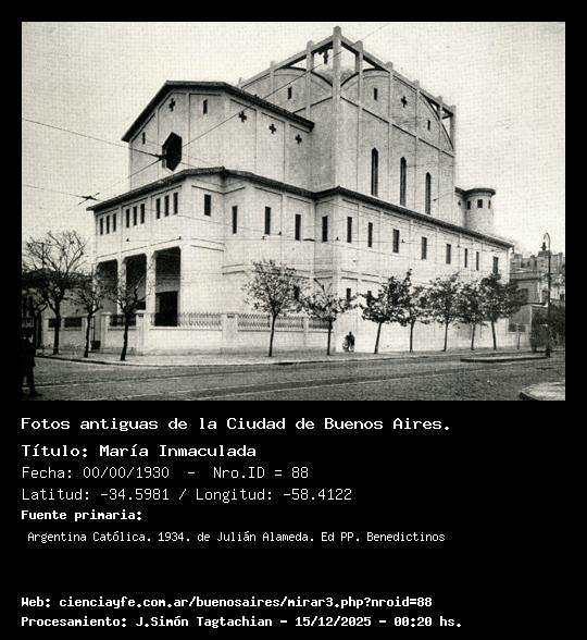 María Inmaculada - 00/00/1930 - [Id: 88] Fuente:Argentina Católica. 1934. de Julián Alameda. Ed PP. Benedictinos Palabras claves:Iglesia María Inmaculada |