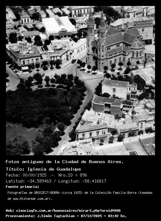 Iglesia de Guadalupe - 00/00/1925 - [Id: 896] Fuente:Fotografías de BROSZEIT-BORRA (circa 1925) de la Colección Familia Borra (tomadas de www.Histarmar.com.ar). |