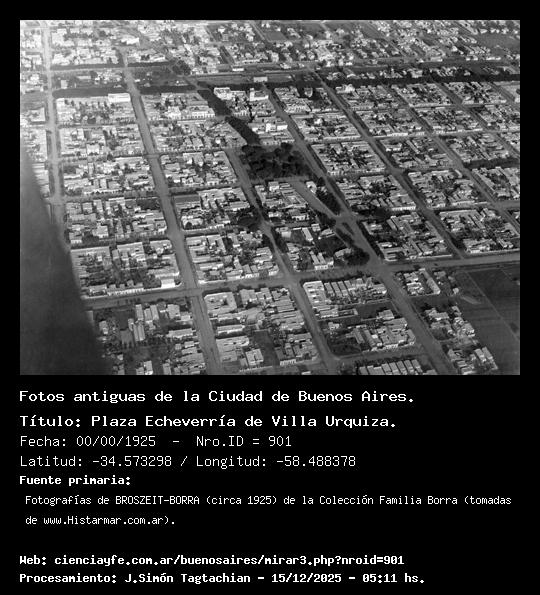 Plaza Echeverría de Villa Urquiza. - 00/00/1925 - [Id: 901] Fuente:Fotografías de BROSZEIT-BORRA (circa 1925) de la Colección Familia Borra (tomadas de www.Histarmar.com.ar). |