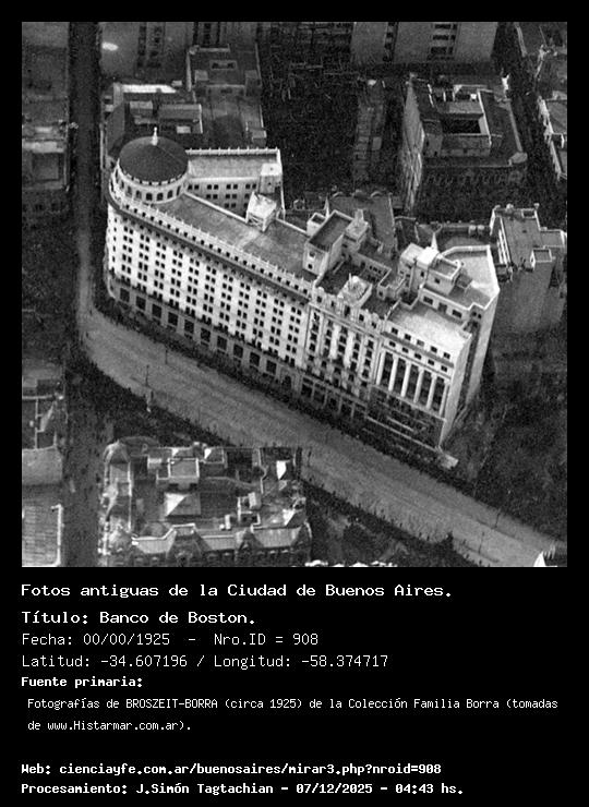 Banco de Boston. - 00/00/1925 - [Id: 908] Fuente:Fotografías de BROSZEIT-BORRA (circa 1925) de la Colección Familia Borra (tomadas de www.Histarmar.com.ar). |