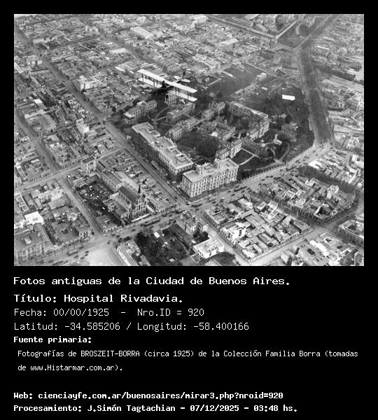 Hospital Rivadavia. - 00/00/1925 - [Id: 920] Fuente:Fotografías de BROSZEIT-BORRA (circa 1925) de la Colección Familia Borra (tomadas de www.Histarmar.com.ar). |