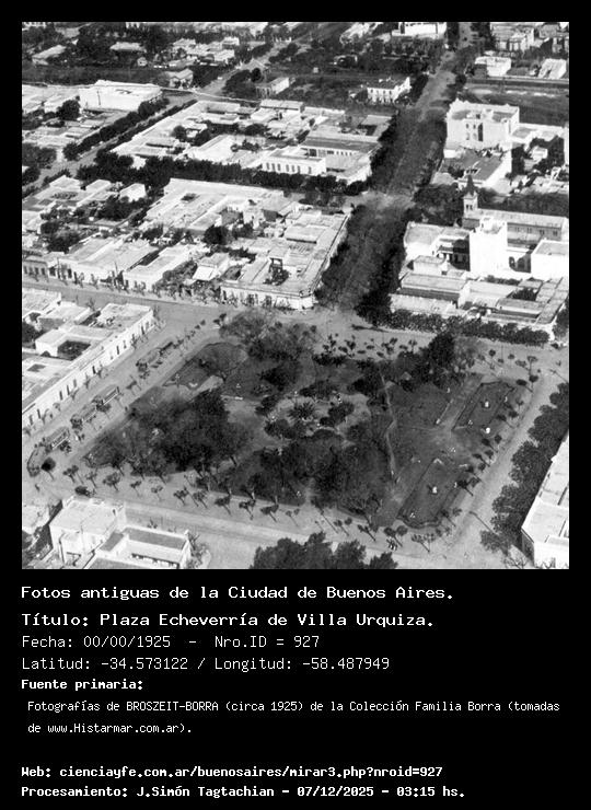 Plaza Echeverría de Villa Urquiza. - 00/00/1925 - [Id: 927] Fuente:Fotografías de BROSZEIT-BORRA (circa 1925) de la Colección Familia Borra (tomadas de www.Histarmar.com.ar). |