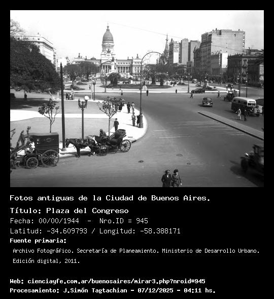 Plaza del Congreso - 00/00/1944 - [Id: 945] Fuente:Archivo Fotográfico. Secretaría de Planeamiento. Ministerio de Desarrollo Urbano. Edición digital, 2011. |