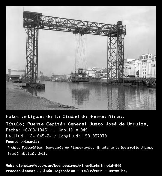 Puente Capitán General Justo José de Urquiza. - 00/00/1945 - [Id: 949] Fuente:Archivo Fotográfico. Secretaría de Planeamiento. Ministerio de Desarrollo Urbano. Edición digital, 2011. |
