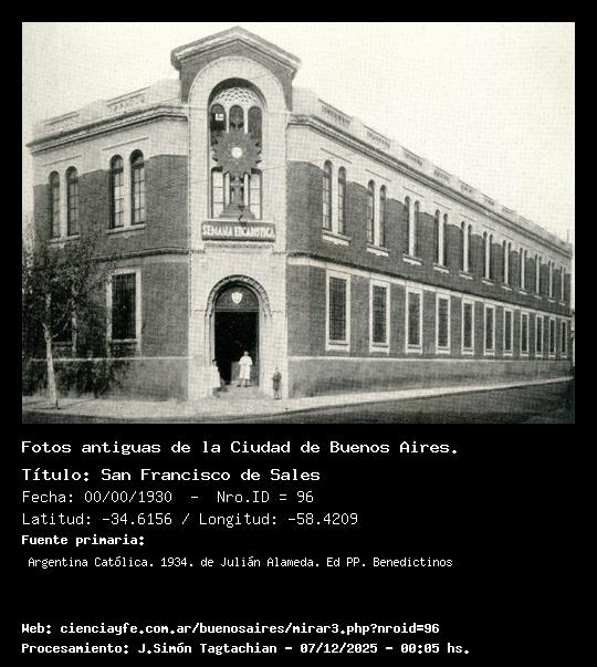 San Francisco de Sales - 00/00/1930 - [Id: 96] Fuente:Argentina Católica. 1934. de Julián Alameda. Ed PP. Benedictinos Palabras claves:Iglesia San Francisco de Sales |