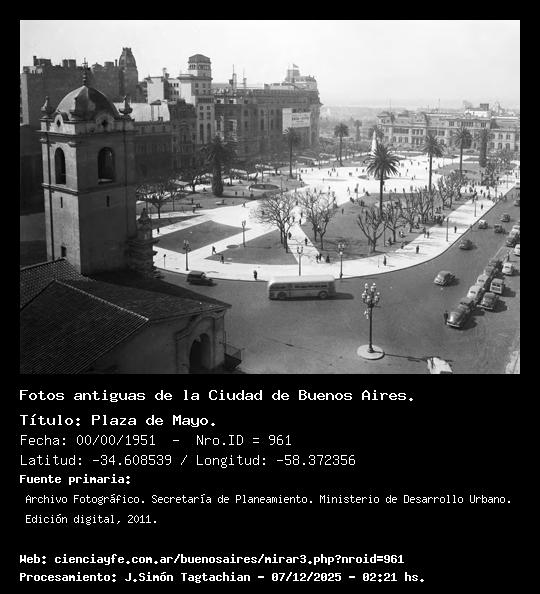 Plaza de Mayo. - 00/00/1951 - [Id: 961] Fuente:Archivo Fotográfico. Secretaría de Planeamiento. Ministerio de Desarrollo Urbano. Edición digital, 2011. |