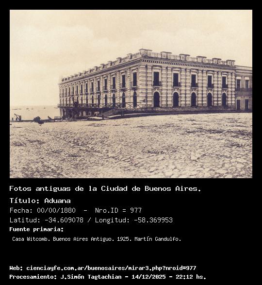 Aduana - 00/00/1880 - [Id: 977] Fuente:Casa Witcomb. Buenos Aires Antiguo. 1925. Martín Gandulfo. |