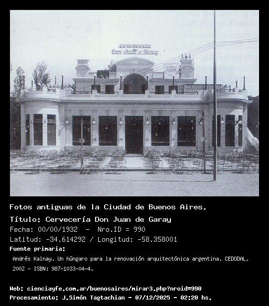 Cervecería Don Juan de Garay - 00/00/1932 - [Id: 990] Fuente:Andrés Kalnay. Un húngaro para la renovación arquitectónica argentina. CEDODAL, 2002 - ISBN: 987-1033-04-4. Palabras claves:Kalnay |