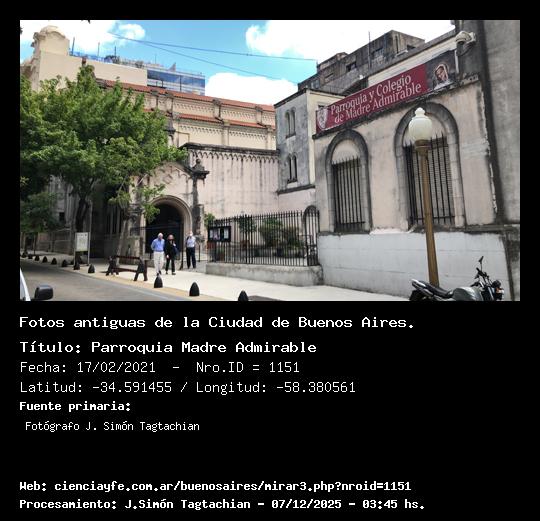 Parroquia Madre Admirable - Fecha: 17/02/2021 - [Id: 1151] Colegio y Parroquia Fuente:Fotógrafo J. Simón Tagtachian