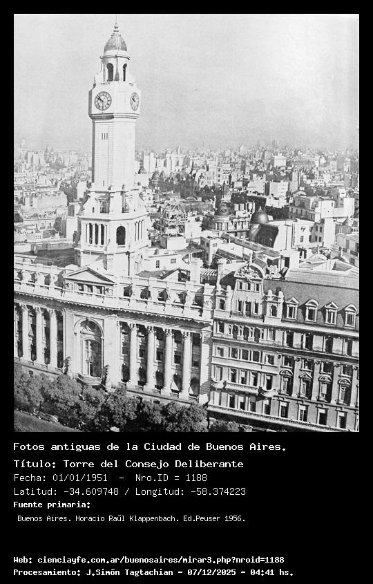 Torre del Consejo Deliberante - Fecha: 01/01/1951 - [Id: 1188] Fuente:Buenos Aires. Horacio Raúl Klappenbach. Ed.Peuser 1956.