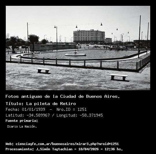 La pileta de Retiro - Fecha: 01/01/1939 - [Id: 1251] Fuente:Diario La Nación.