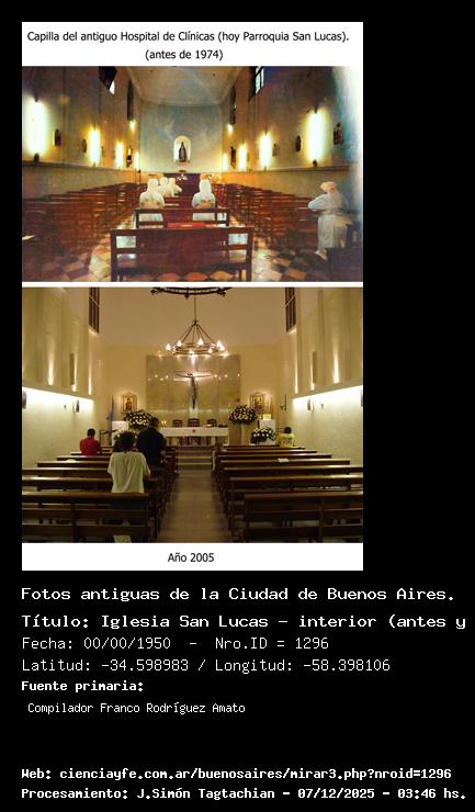 Iglesia San Lucas - interior (antes y ahora) - Fecha: 00/00/1950 - [Id: 1296] Antiguo Hospital de Clínicas - Comparación del interior de la Iglesia antes y ahora Fuente:Compilador Franco Rodríguez Amato