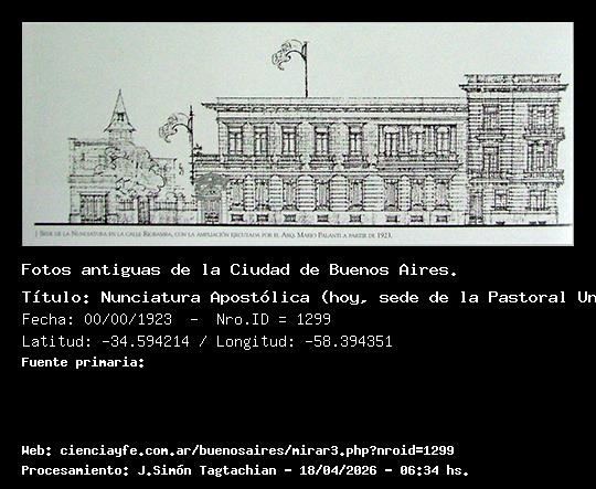 Nunciatura Apostólica (hoy, sede de la Pastoral Universitaria). - Fecha: 00/00/1923 - [Id: 1299] Fuente:Libro de la Nunciatura