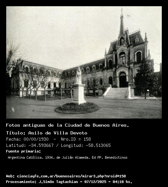 Asilo de Villa Devoto - Fecha: 00/00/1930 - [Id: 158] Asilo de Villa Devoto. Conferencias de Señoras de San Vicente de Paúl. Hoy es el Colegio FASTA. Fuente:Argentina Católica. 1934. de Julián Alameda. Ed PP. Benedictinos