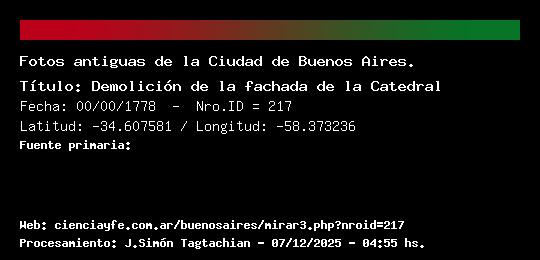 Demolición de la fachada de la Catedral - Fecha: 00/00/1778 - [Id: 217] En 1778 el arq. Antonio Masella demuele la fachada de la Catedral del Arq. Blanqui. (Fuente: TEH-523 p33). Fuente: